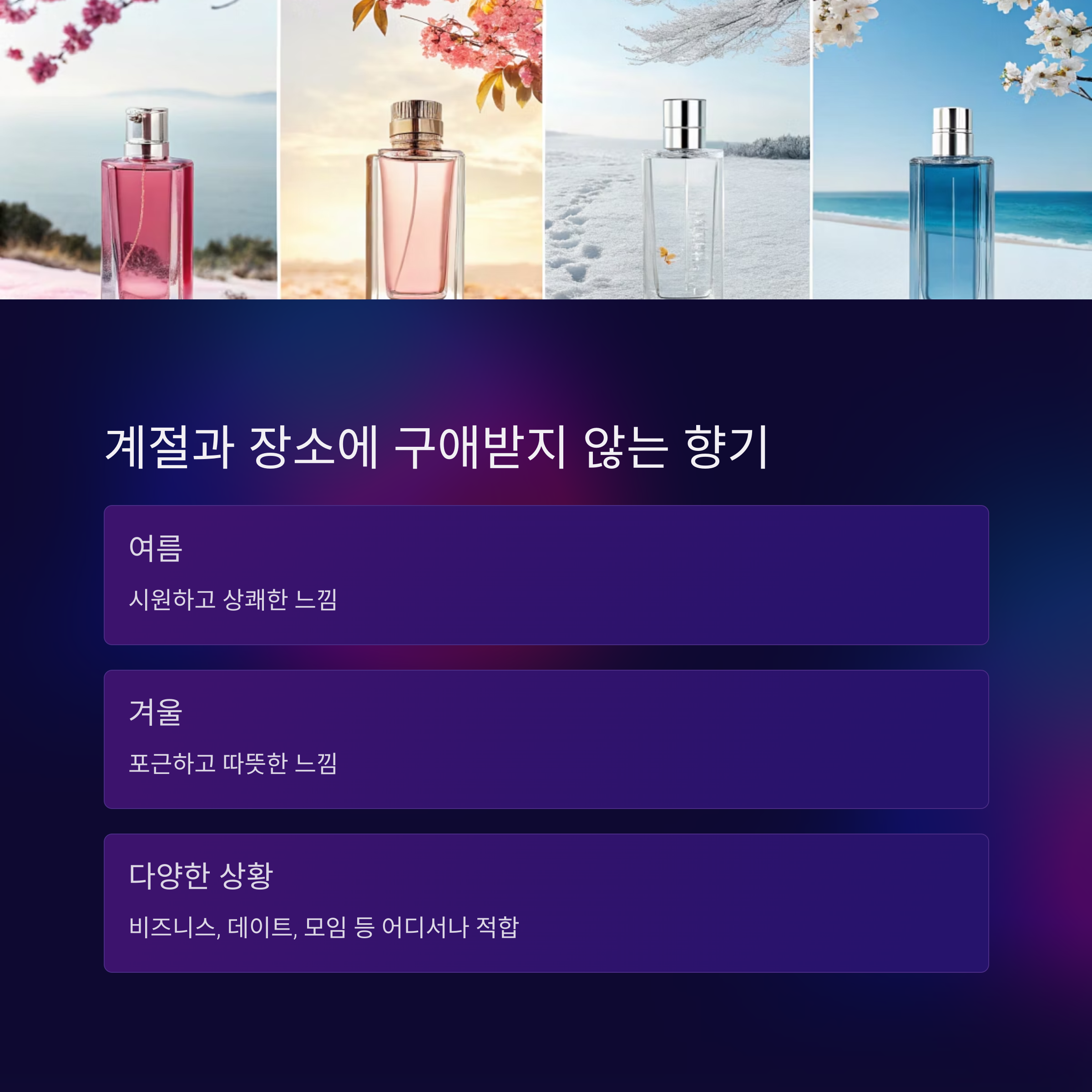 향수 하나로 스타일 완성, 계절과 장소에 구애 없음