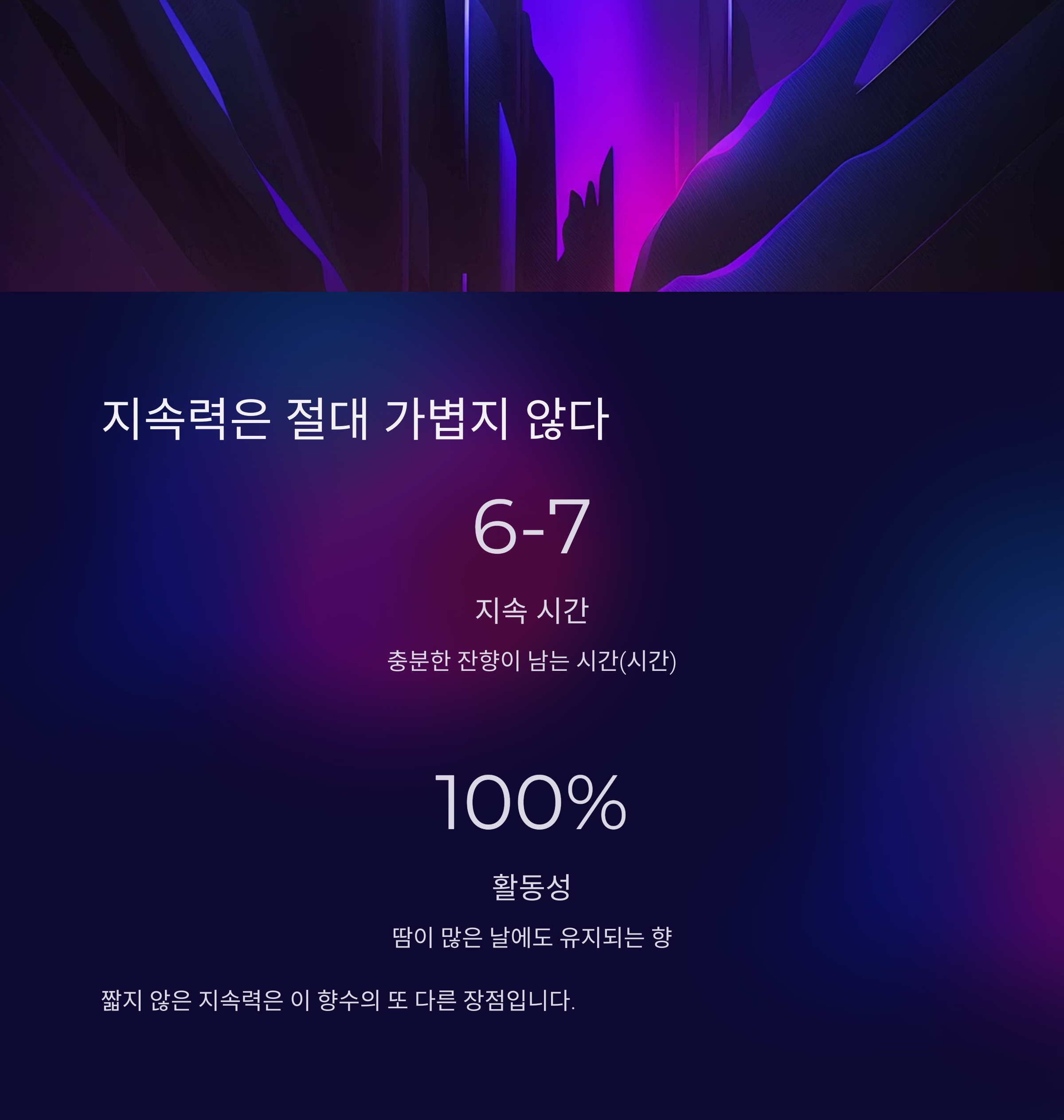 하루 종일 향이 유지되지는 않지만, 6~7시간 정도는 충분히 잔향이 남습니다.