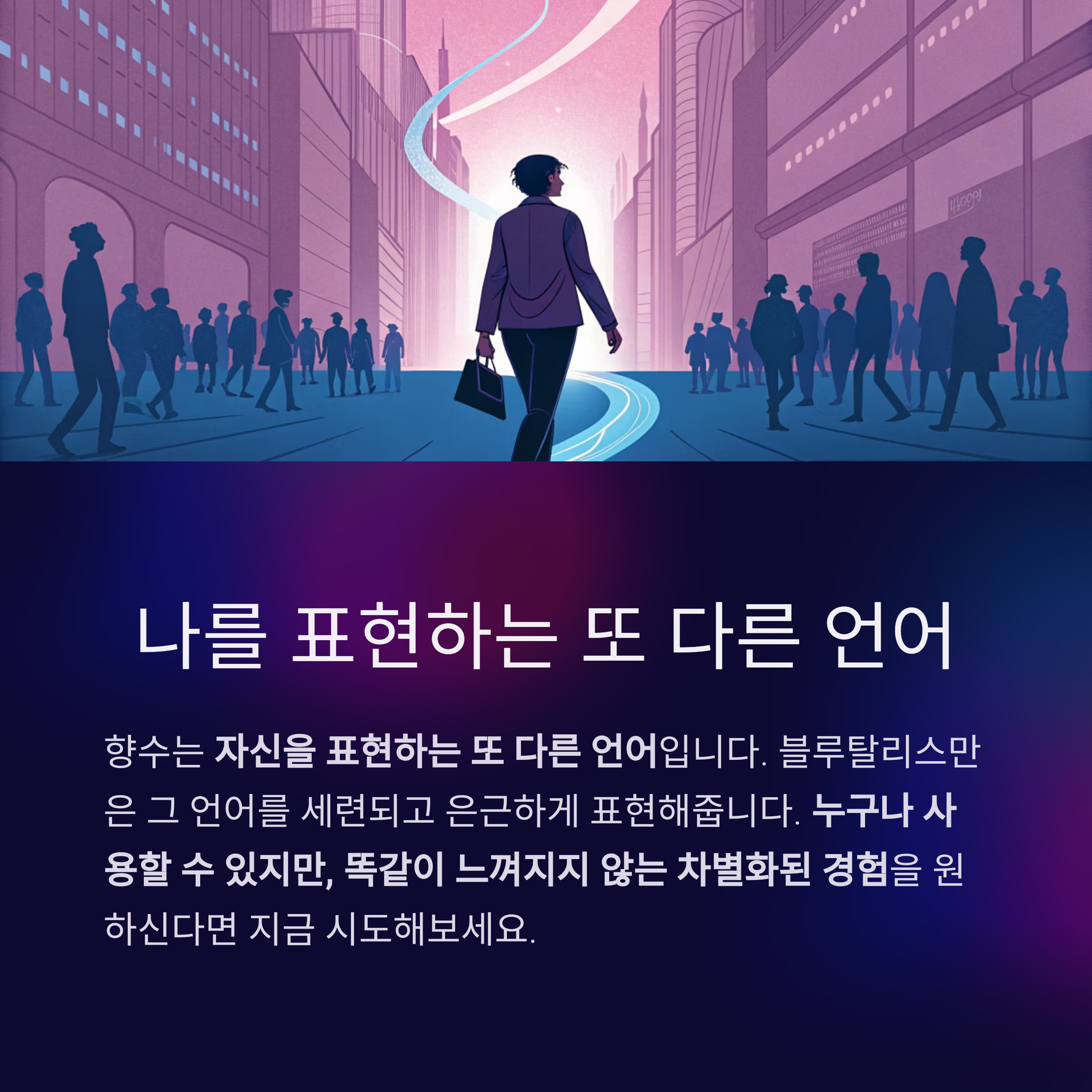향수는 단순한 악세서리가 아닌 자신을 표현하는 또 다른 언어입니다.