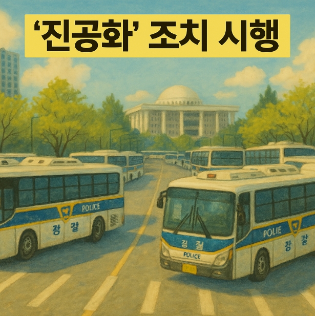 '진공화'는 경찰이 집회나 시위를 사전에 차단하기 위해 특정 지역을 완전히 통제하여 일반인의 접근을 막는 조치를 의미합니다. 이는 공공 안전을 유지하고 잠재적인 충돌이나 혼란을 예방하기 위한 목적으로 시행됩니다.