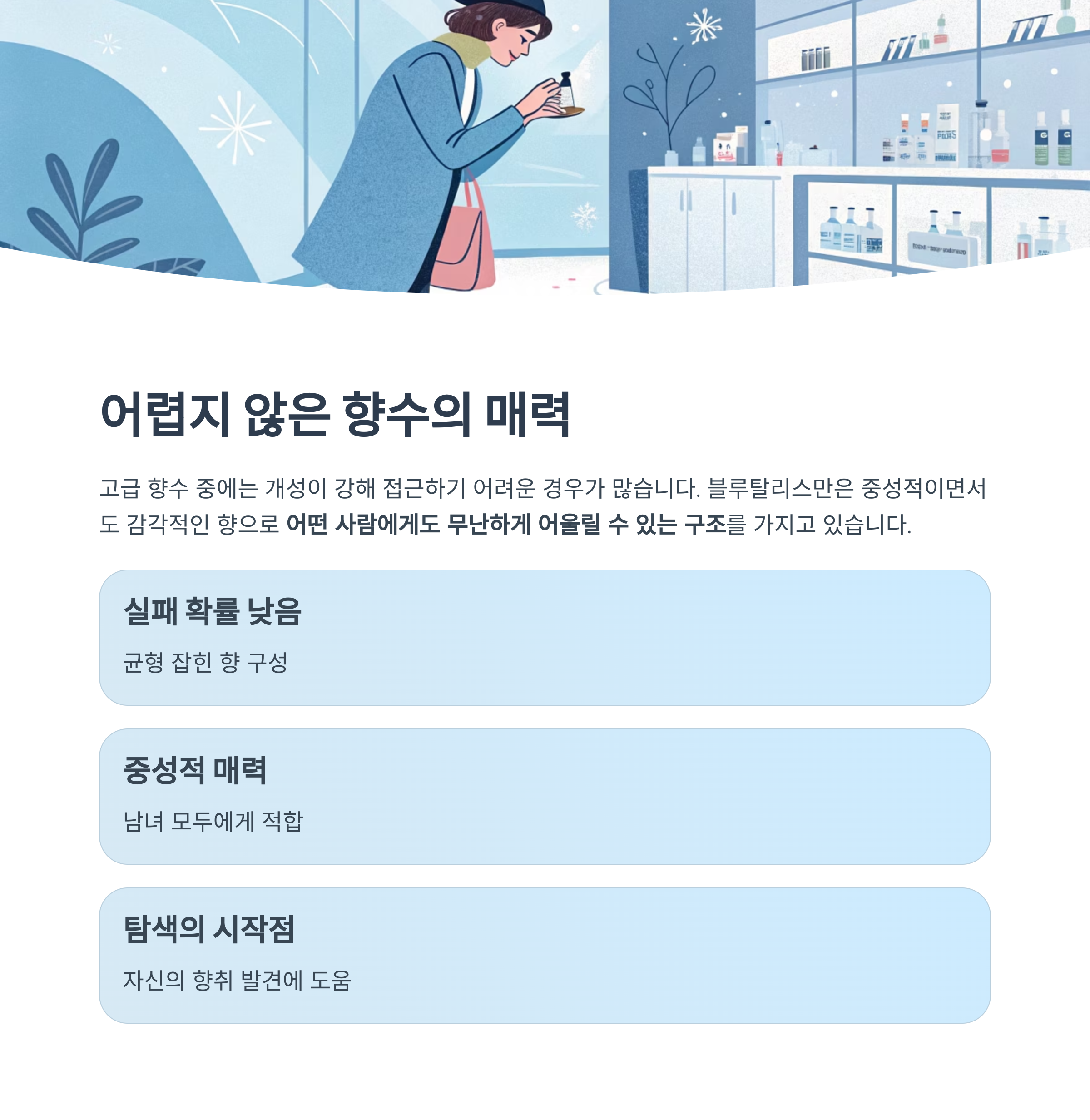 그런 점에서 블루탈리스만은 고급 향수 입문자들에게 이상적인 선택지로 떠오르고 있습니다.