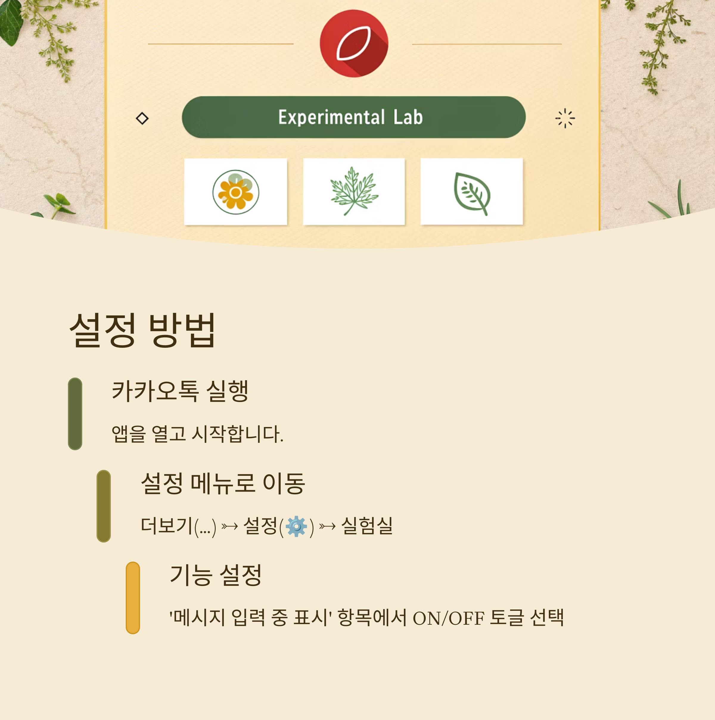 (일부 버전에서는 ‘전체 설정’ → ‘실험실’로 진입) - ‘메시지 입력 중 표시’ 항목 찾기