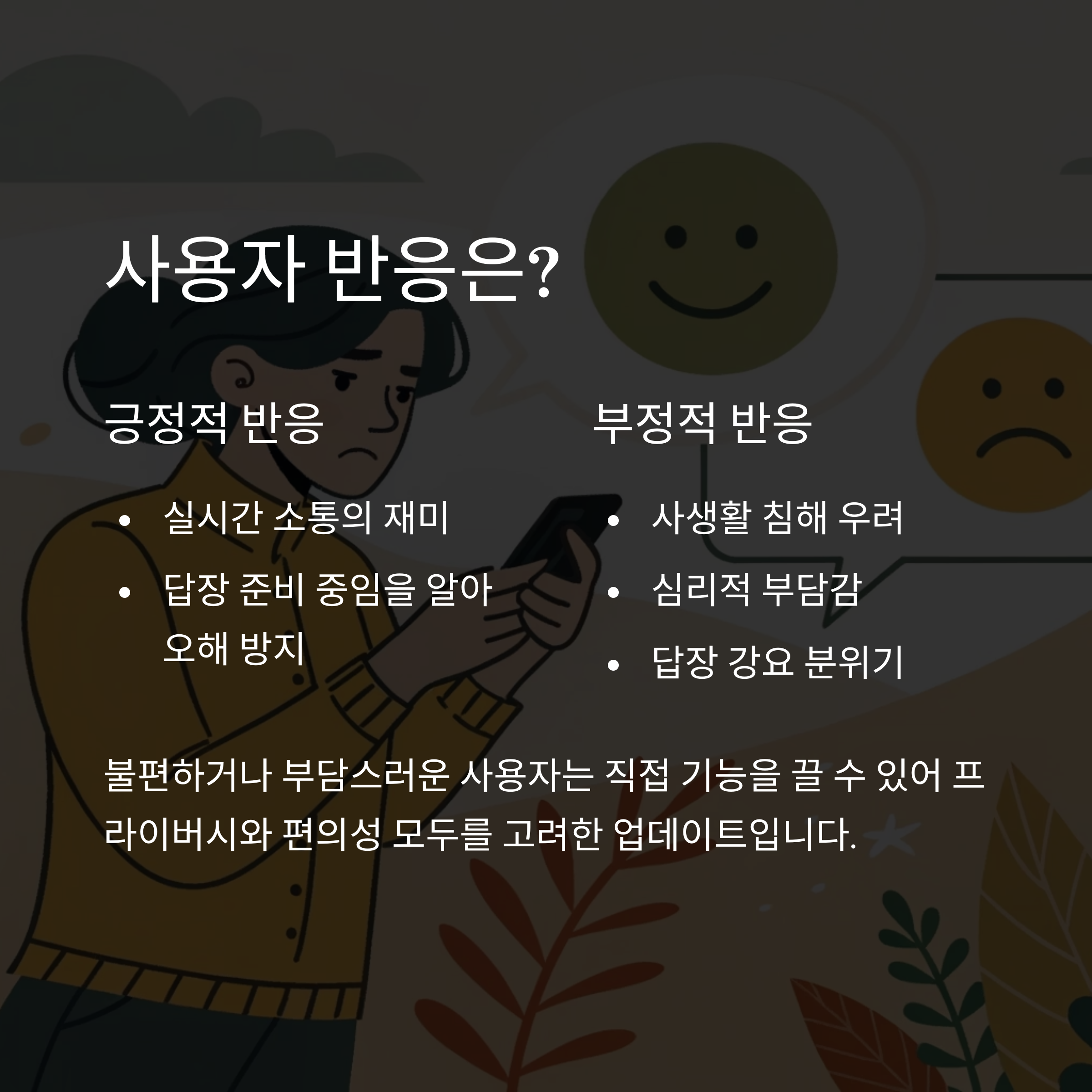 "이제 카톡도 왓츠앱처럼 실시간 반응을 보여줘서 편하다." - 오해 방지