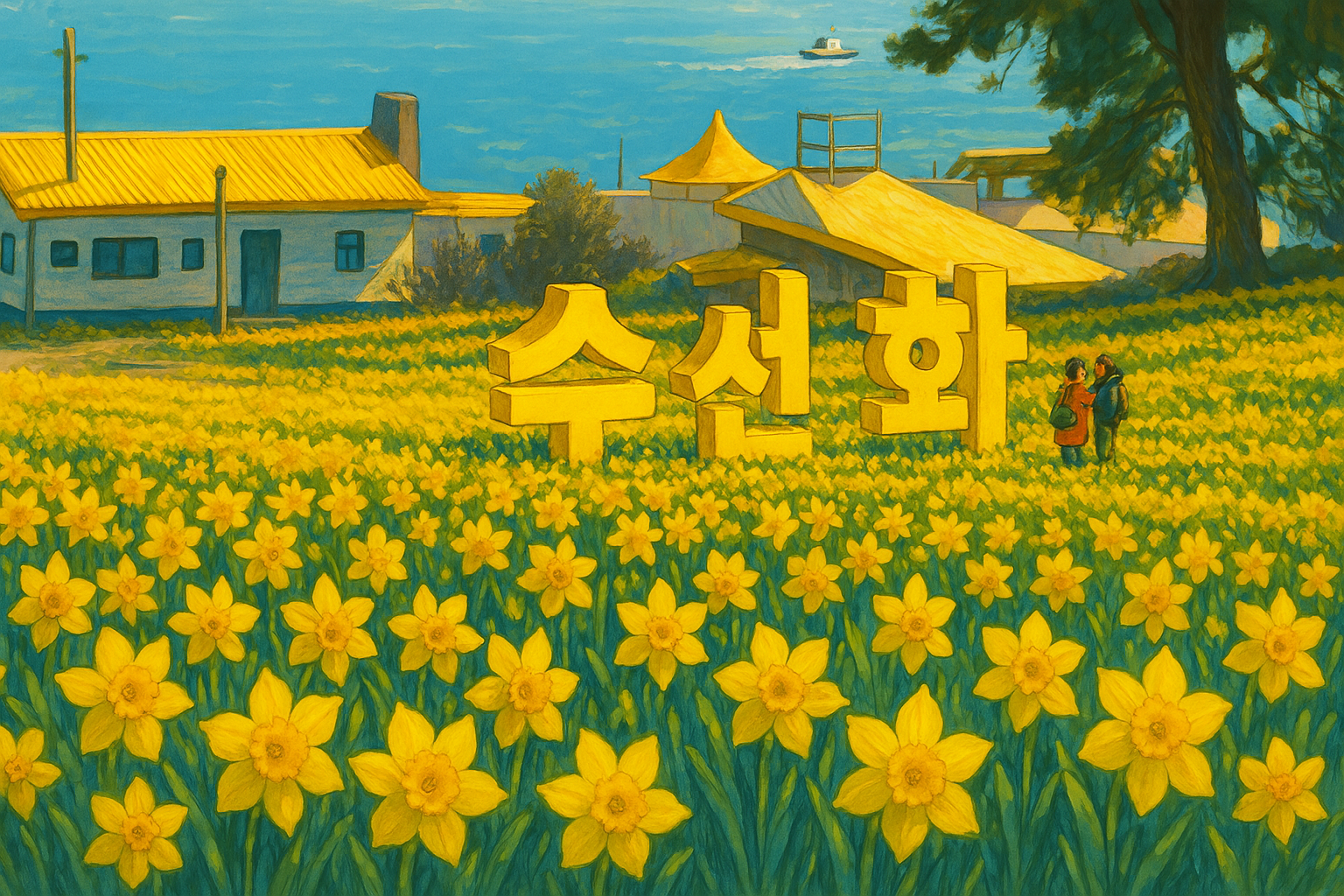 푸른 바다와 노란 수선화가 어우러진 아름다운 섬 선도에서 특별한 봄날의 추억을 만드세요!